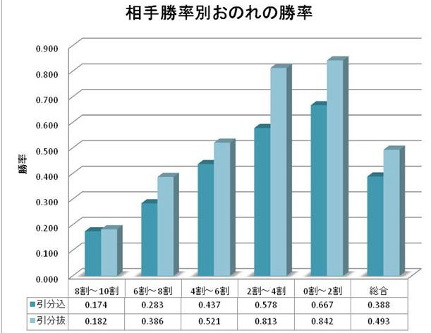 やはり、10割から相手の勝率を引いたものが自分の勝率になっているものですね。